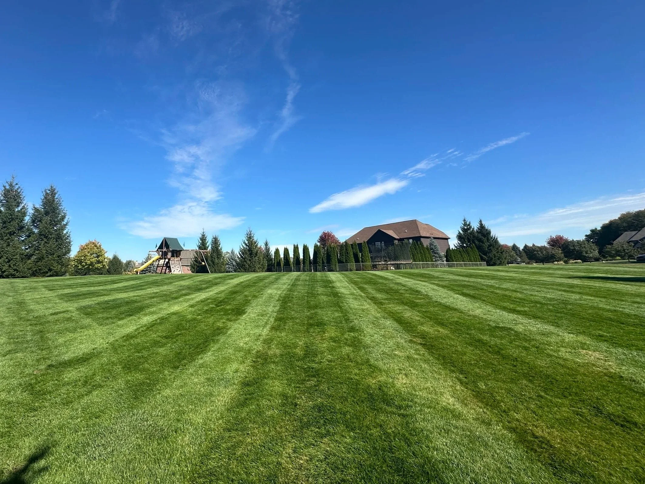 Services Included: Professional mowing and striping, precision string trimming of all perimeters/obstacles, mechanical edging of driveway/walkways, and full debris blow-off